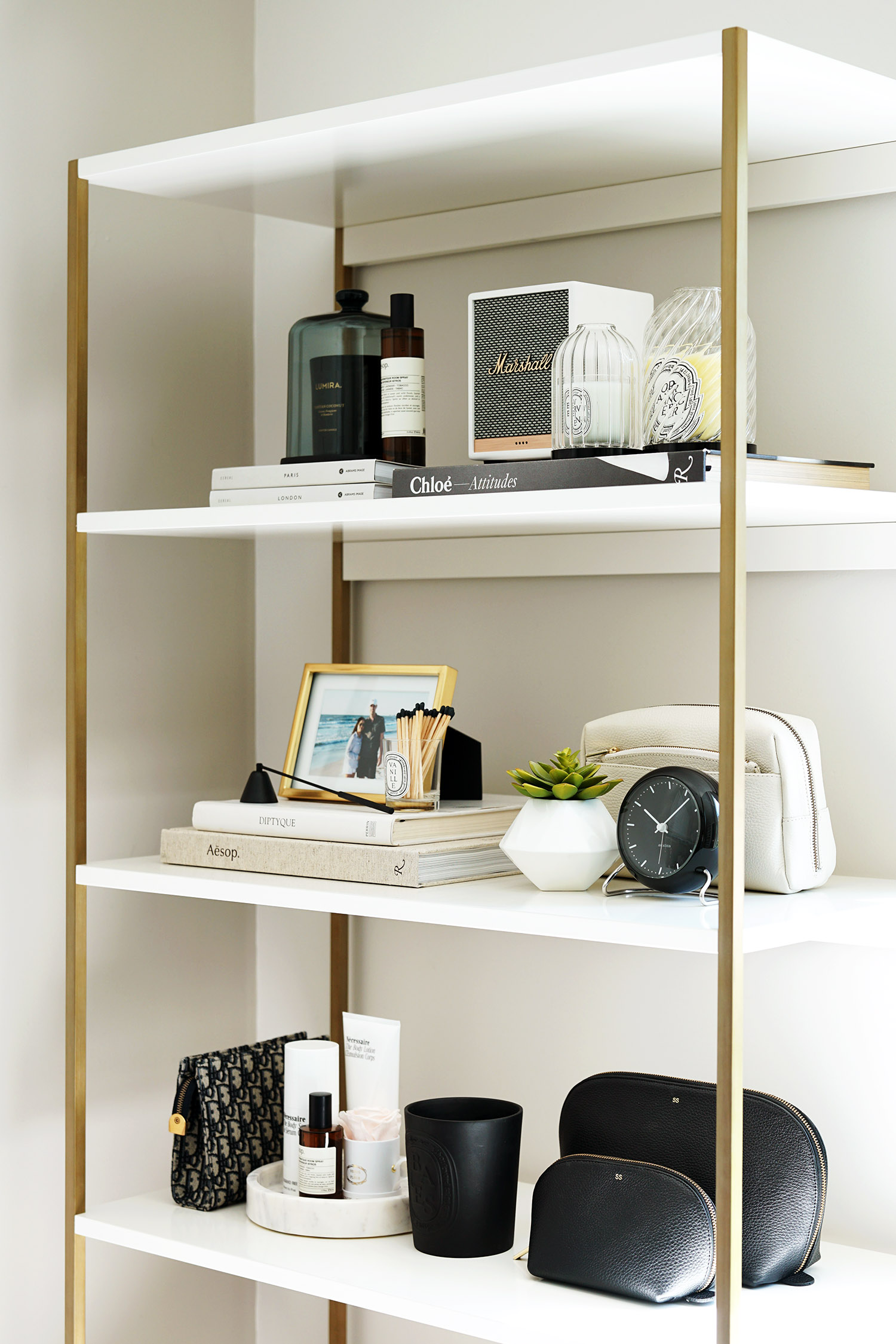 Pour la salle de bain, j'ai essayé de trouver des solutions de comptoir pour mon sèche-cheveux / brosse. J'ai décidé d'essayer le Haircare Holder (4) de West Elm, fabriqué par Yamazaki Home. Il est petit et compact, il ne prendra donc pas beaucoup d'espace de comptoir. Il est fabriqué avec un acier enduit de poudre. (Également disponible en noir). Cela fonctionne pour les sèche-cheveux que j'alterne entre lesquels le Dyson Supersonic (examiné ici) et le Harry Josh Ultra Light (critique ici). Le support lui-même est assez petit et compact, donc si vous possédez un sèche-cheveux plus grand, il ne fonctionnera probablement pas pour vos besoins. Jusqu'à présent, il a très bien résisté au cours des derniers mois depuis que je l'ai acheté.